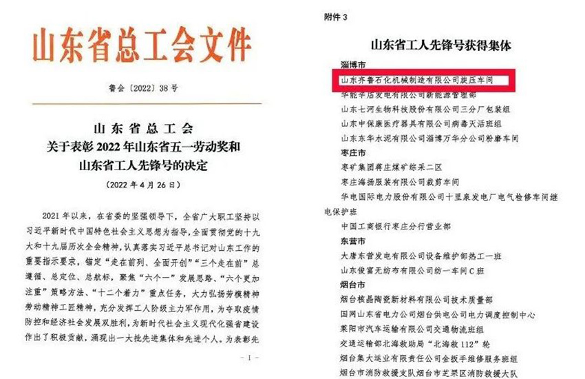 五一勞動節(jié)前夕,山東省工人先鋒號的表彰人選(集體)完成公示,山東齊魯石化機械制造有限公司旋壓車間成功入選“山東省工人先鋒號”。沉甸甸的獎,沉甸甸的榮譽,作為省內(nèi)工人階級最高獎項之一,此項殊榮的授予是對旋壓車間一線員工具備新時代工人精神的充分肯定和高度贊譽。